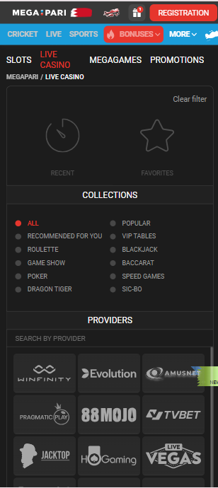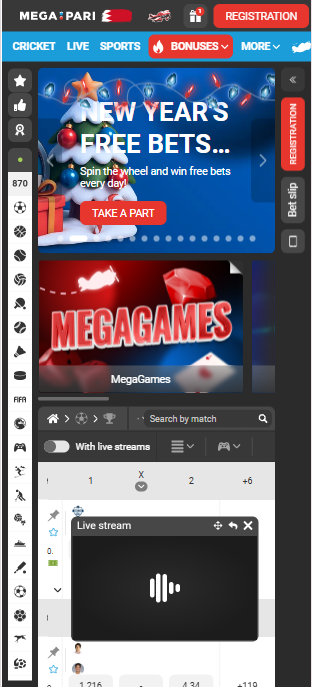 اپلیکیشن Megapari (مگاپاری) یک پلتفرم سریع و حرفهای برای دسترسی آسان به بخشهای پیشبینی ورزشی و کازینو است.